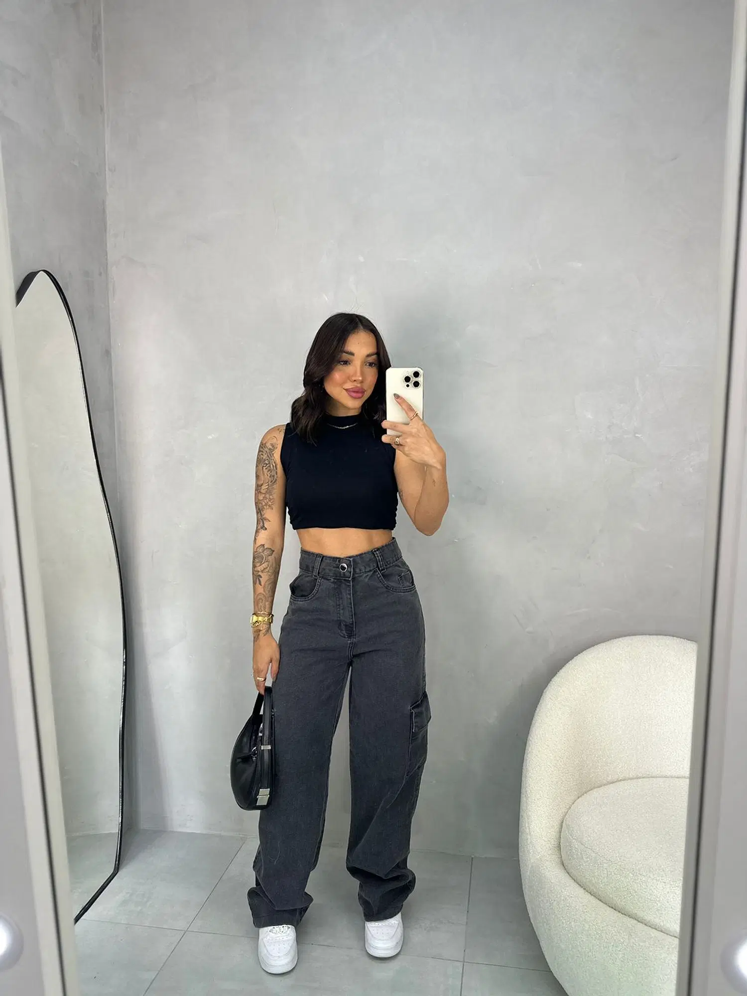 A Calça Jeans Wide Leg Cargo Black é a peça perfeita para quem busca estilo e conforto em um só produto. Com um design moderno e versátil, essa calça é ideal para compor looks despojados e cheios de personalidade.
